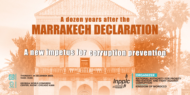 The National Authority for Probity, Prevention and Fight against Corruption of the Kingdom of Morocco, an IAACA Executive Committee Member, will host an in-person special event “Marrakech Declaration: A Decade Later” during CoSP10 on December 14, 2023, from 14:00 to 14:50. The event aims to highlight the importance of prevention as one of the main pillars in the fight against corruption. Representatives of key stakeholders, including heads of anti-corruption networks and international organizations, will share new perspectives for corruption prevention and strengthening international cooperation through technical assistance and capacity-building.