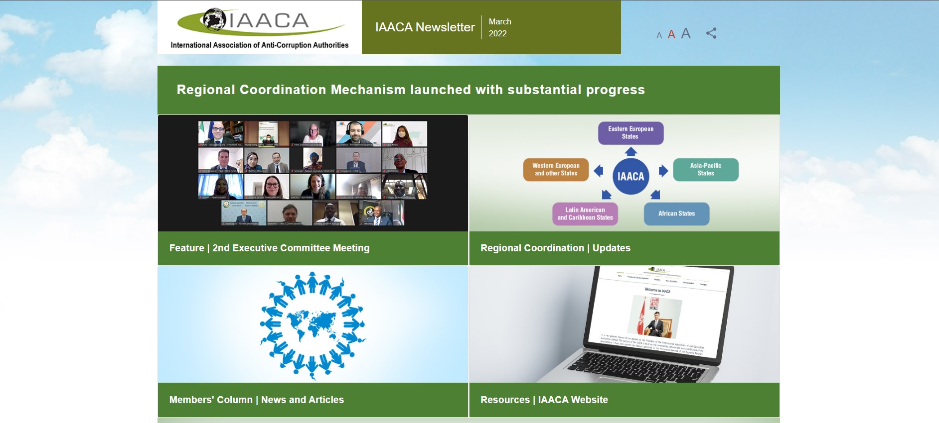 The 2nd Executive Committee (ExCo) meeting was successfully held on 24 February 2022. Mr Simon Peh, President of IAACA, thanked ExCo members for making good efforts in taking forward the regional coordination mechanism shortly after the 1st ExCo meeting in January. During the meeting, ExCo members actively shared their experience in reaching out to anti-corruption authorities (ACAs) in their regions and offered valuable views on enhancing IAACA's visibility in the international arena.